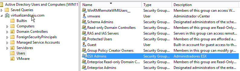 Primeiro precisamos criar um grupo no Active Directory. O grupo padrão para integração que a VMware usa é ESXI Admins. Podemos usar outro grupo, veremos isso mais adiante.