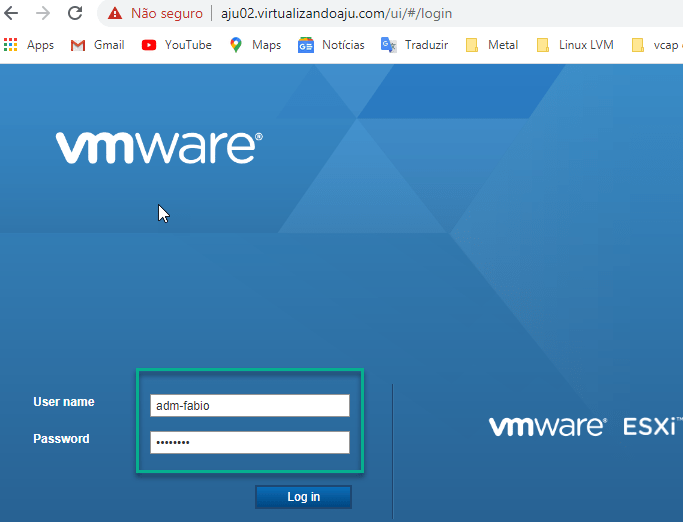 Segundo teste de acesso, agora pela interface web. Aqui você pode fornecer apenas o nome da conta de usuário como na figura 8.
