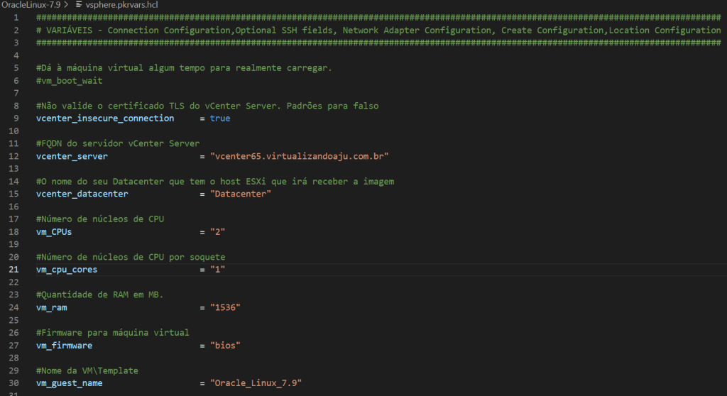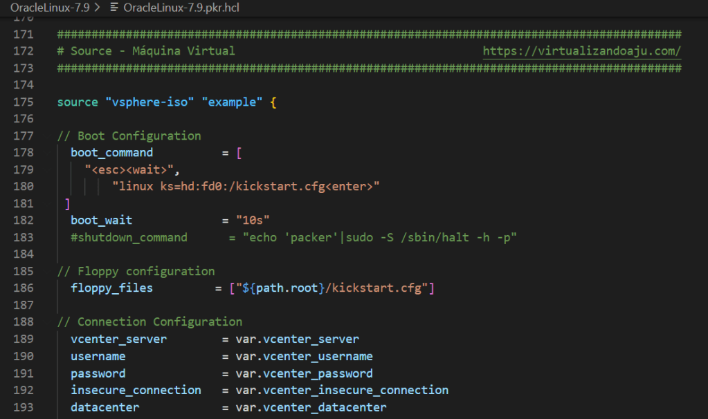 And finally the last file, which contains the build, the OracleLinux-7.9.pkr.hcl. I will only put the most relevant images with the explanations.