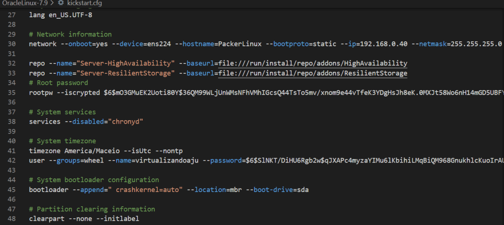 It’s a response file. In it I have all the necessary configurations for the installation of the OS and post installation configurations. It is very important that this file is well configured.