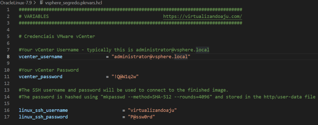 We have three files, the first one you can see now, a variable file: vsphere_secret.pkrvars.hcl. Note from a blog reader. Hide passwords. We will have a next post talking about vault. Wait 🙂