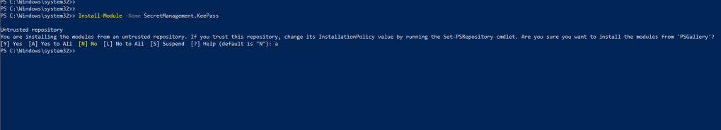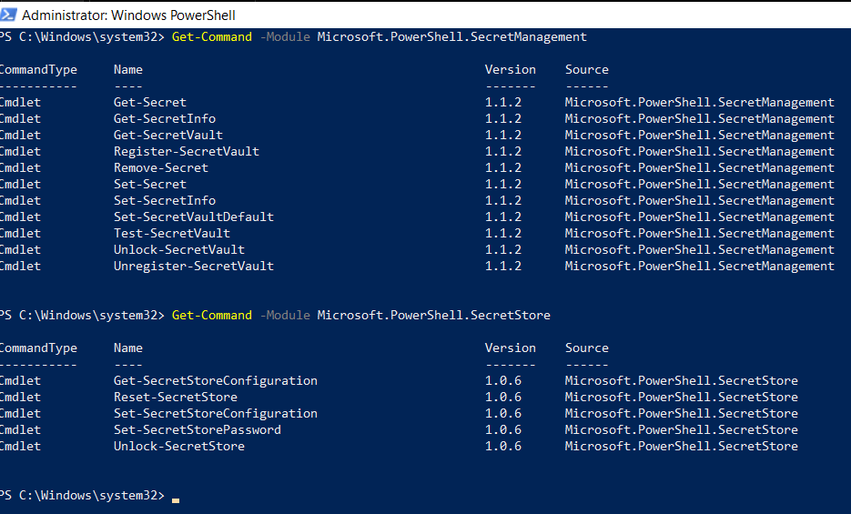 Install-Module -Name Microsoft.PowerShell.SecretManagement