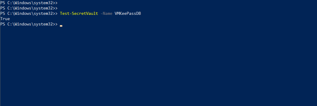 Register-SecretVault -Name VMwarePassdb -ModuleName Microsoft.PowerShell.SecretStore -DefaultVault