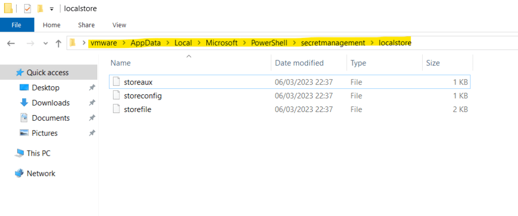 Caminho: %LOCALAPPDATA%\Microsoft\PowerShell\secretmanagement