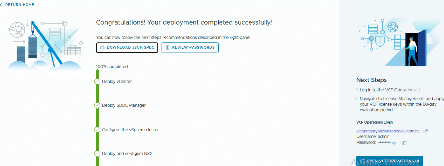 Deploy do VMware Cloud Foundation concluído com sucesso em um ambiente aninhado! 🎯